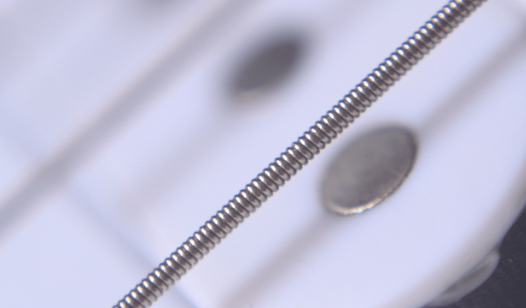 Guitar strings are what you pick, pluck or strum to create sound through vibrations. Guitar strings come in different varieties made with different materials. Electric guitar strings are made of different kinds of metal and are made by winding thin wire around a thicker core wire. They can be either round-wound or flat-wound, and each produces a different sound.