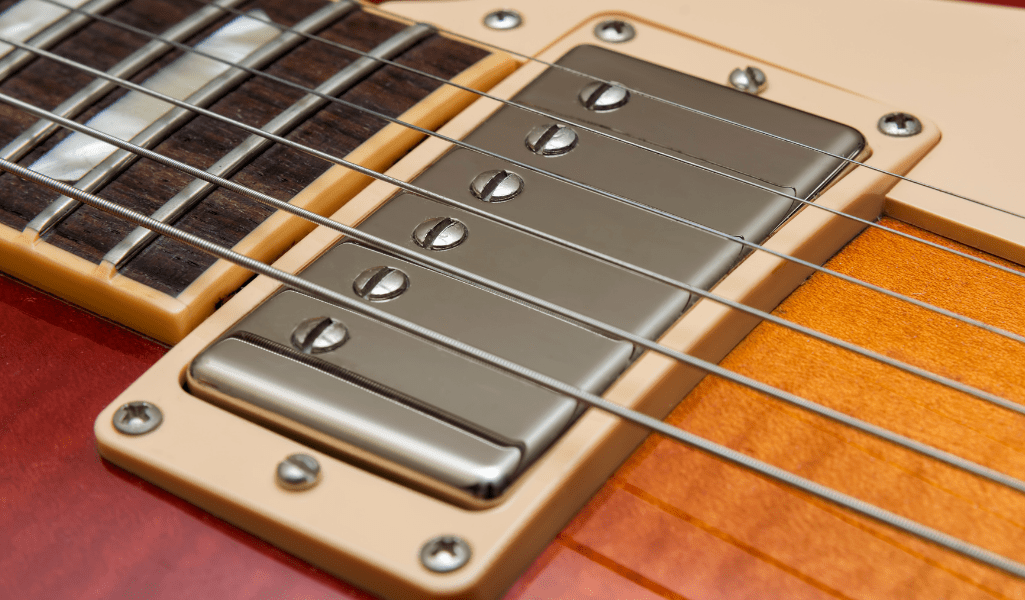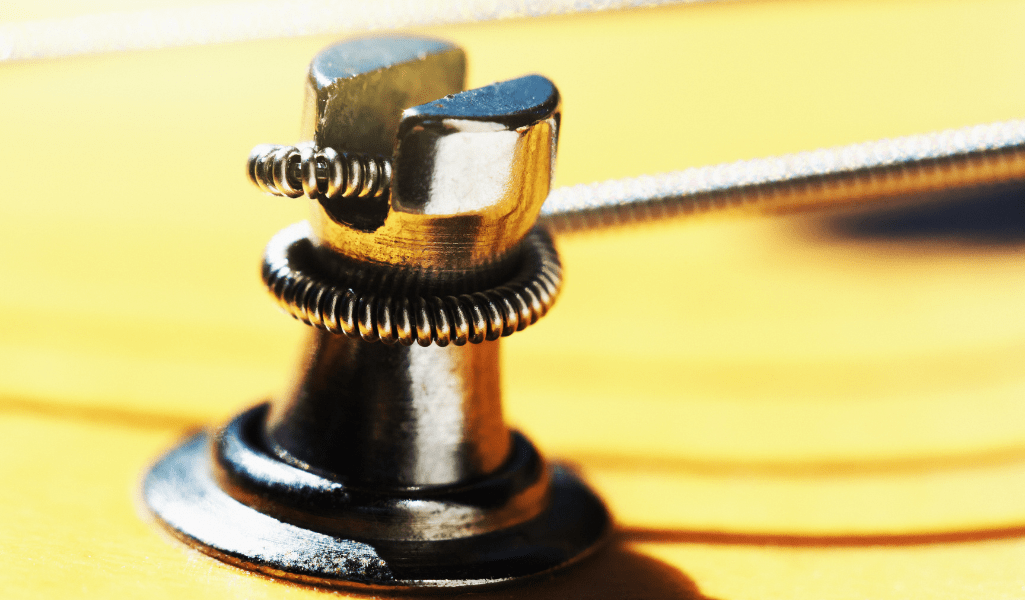 Found on all electric guitars as well as on some acoustics. Pickups are magnets that pick up the vibrations of the strings and send them to an amplifier to produce sound. On acoustic guitars, some pickups will grab sound from the body’s chamber as well.